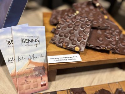 这个巧克力是由68%哥打马鲁都黑巧克力制成,由Benns Ethicoa加工制作,独家选用沙巴哥打马鲁都的可可农夫Poimon Dangkat所生产的可可豆。Benns Ethicoa通过大马可可局与本地可可农夫合作,共同推出这款“原豆精制”(bean to bar)的优质巧克力产品。