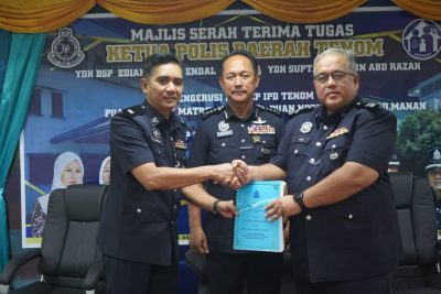 (丹南27日讯)丹南警察局日前在警局会议室举行新旧主任职责移交仪式,沙巴警察总监拿督赵迪狄坤受邀担任见证人。