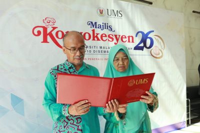 (亚庇7日讯)因罹患卵巢癌离世的36岁女医生诺娜兹拉,今天获得沙巴大学追授博士学位,由父亲含泪代表领取。