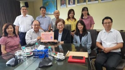 刘静芝于昨日接见兵南邦中华幼儿园董事长方德宇率领的幼儿园代表团时,宣布好消息。