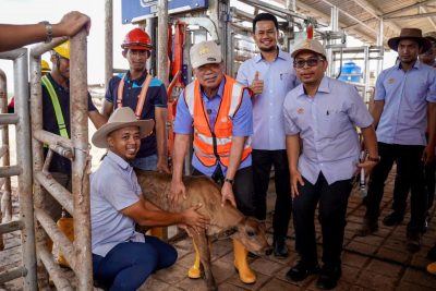 在参观斗湖Sawit Kinabalu综合畜牧中心(SKLIC)后,他指出该中心拥有1万5453头牛,其中1万零692头在占地2万7444公顷的油棕园内进行综合养殖。
