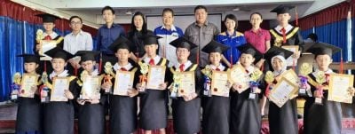 (山打根9日讯)山打根育才小学于周三(8日)举办主题为“青春无悔,逐梦未来”的六年级毕业典礼,93名毕业生戴四方帽。