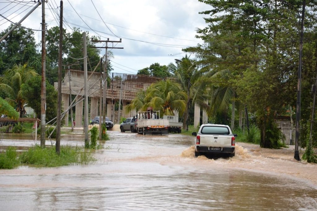 从今早起,往来保佛与瓜拉班尤之间的车辆,除了重型交通工具之外,大部分轻型汽车皆绕道使用保佛林巴望通道前往目的地。不仅如此,由保佛警察局通往保佛综合体育馆的道路也淹水,无法通车。