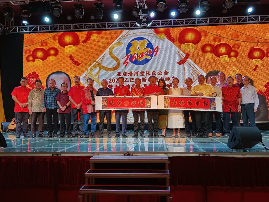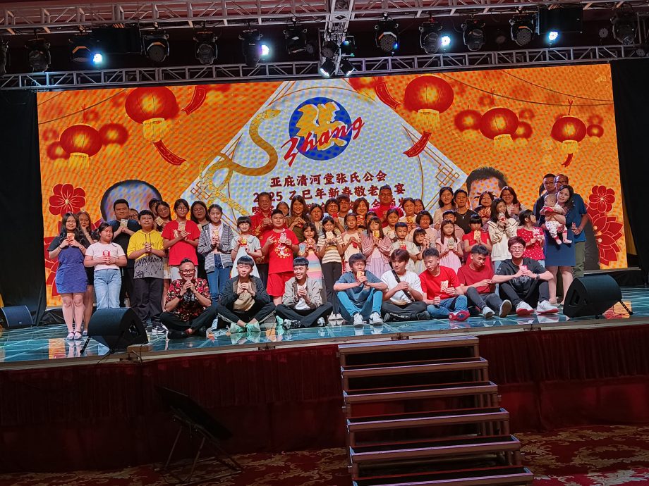 (亚庇15日讯)亚庇清河堂张氏公会昨晚在沙巴客联大厦不夜天皇宫宴会厅举办乙巳年新春敬老团拜暨颁发奖励金及助学金,会员宗亲踊跃扶老携幼出席,欢聚一堂。