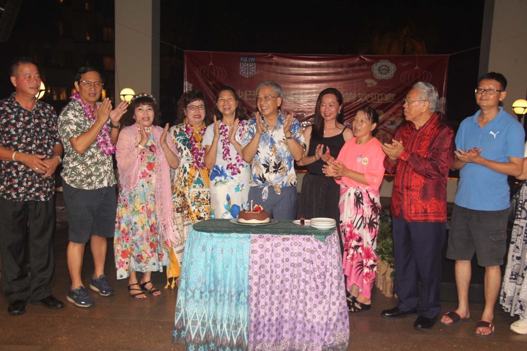 第5届全国榕属乡亲新春大团拜洗尘宴上,主办方为1月至3月出生者庆生,图为众寿星一起切蛋糕。