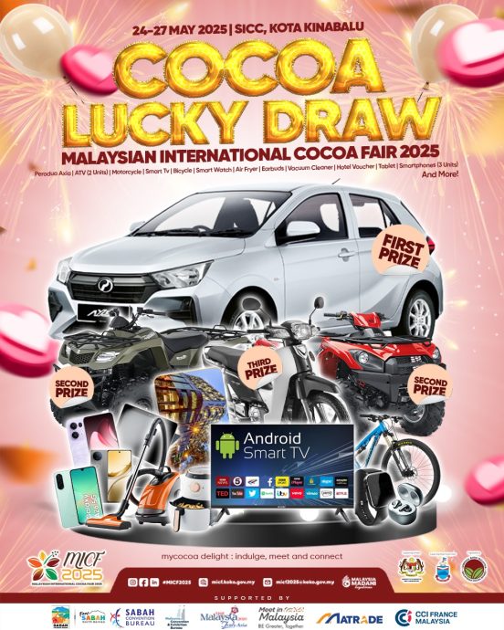 (亚庇16日讯)马来西亚国际可可博览会(MICF)即将于来临5月24日至27日,在亚庇首度举行,届时大会将送出国产轿车、摩托车等总值超过10万令吉的幸运抽奖大礼!