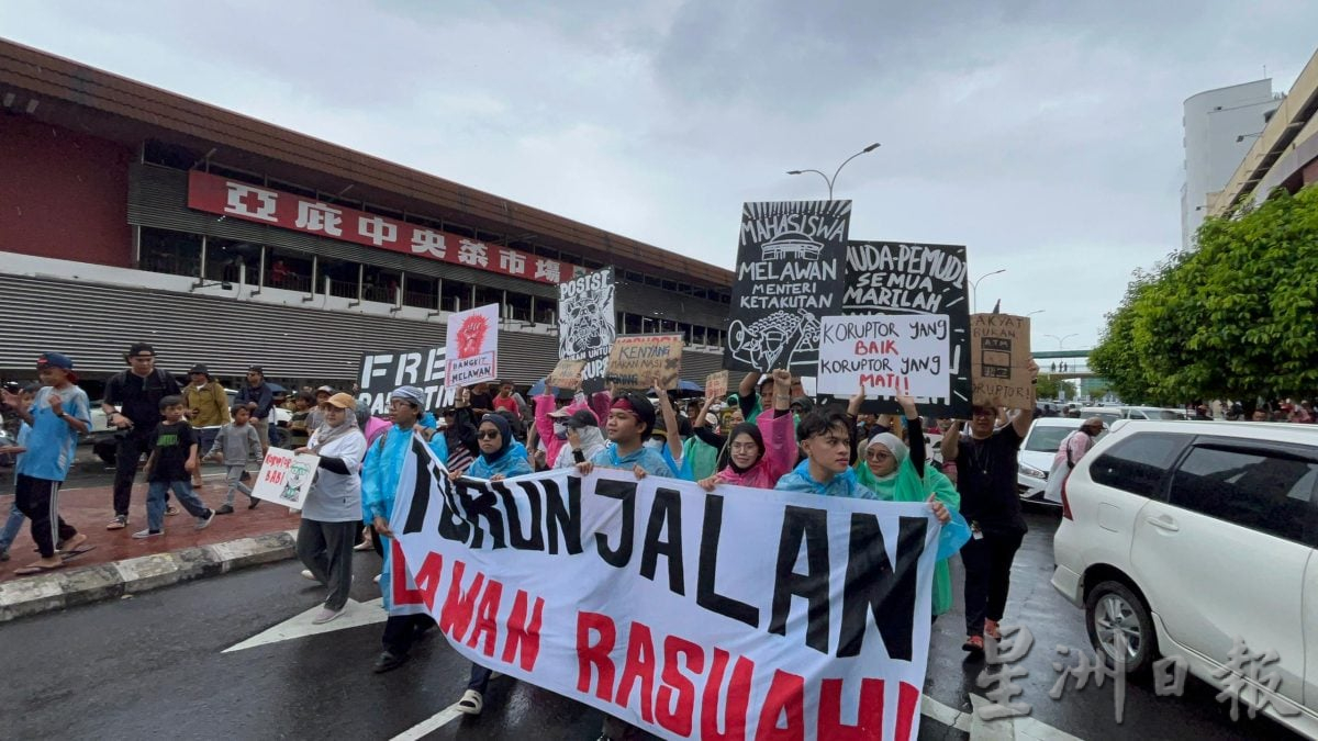 (亚庇21日讯)沙巴州首府今日盛大举行沙巴州元首华诞庆典活动的同时,也迎来两场由大学生和民运组织分别举办的和平集会,分别高喊反贪污、挺哈芝芝与慕沙阿曼口号,其中反贪集会参与者冒雨游行,惹人注目。