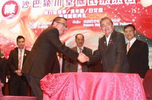 陈湘发(右二)恭贺陈学祥出任沙巴颍川堂陈氏宗亲会总会长。