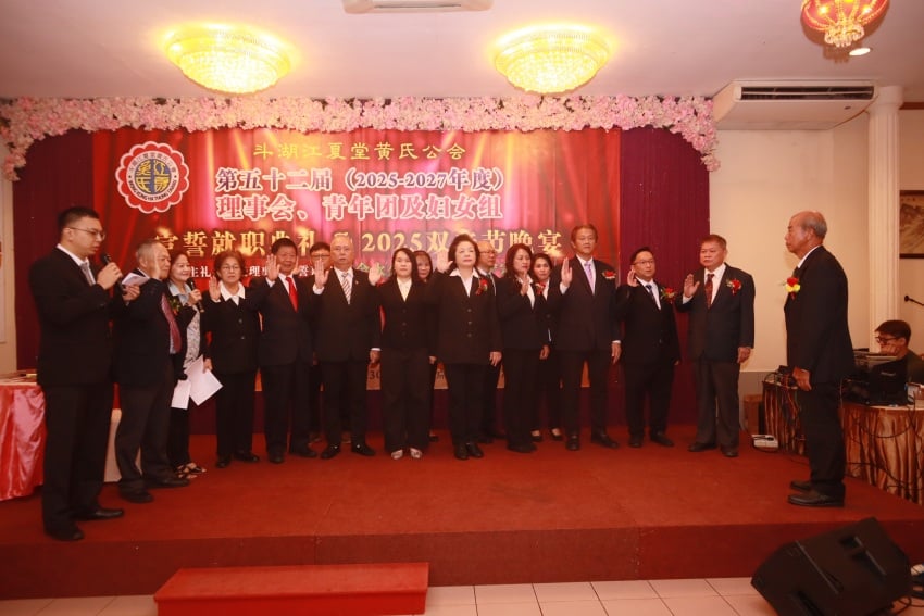 斗湖江夏堂黄氏公会昨晚于举办第52届(2025-2027年度)理事会,青年团及妇女组宣誓就职典礼暨2025年双亲节晚宴,永久名誉顾问黄维城担任大会主宾与理事会监誓嘉宾,永久名誉顾问黄国芳担任青年团监誓嘉宾,以及永久名誉顾问黄超希担任妇女组监誓嘉宾。