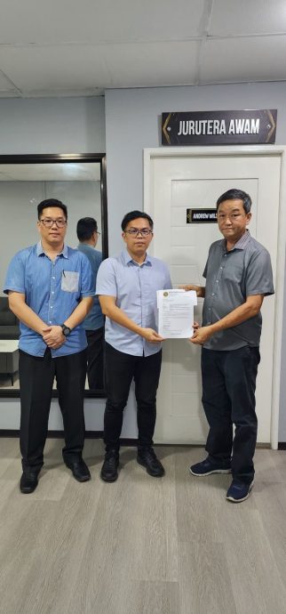 陈金鼎日前到县议会,正式从拿笃县议会官员安德鲁威廉乔斯手中接获县议会对拿笃中学兴建体育馆的批文,董事张俊强陪同。