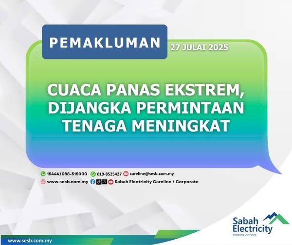 连日来持续高温天气导致全州用电需求大增,沙电透过其服务热线脸书专页,吁请用户节省用电以稳定电供。