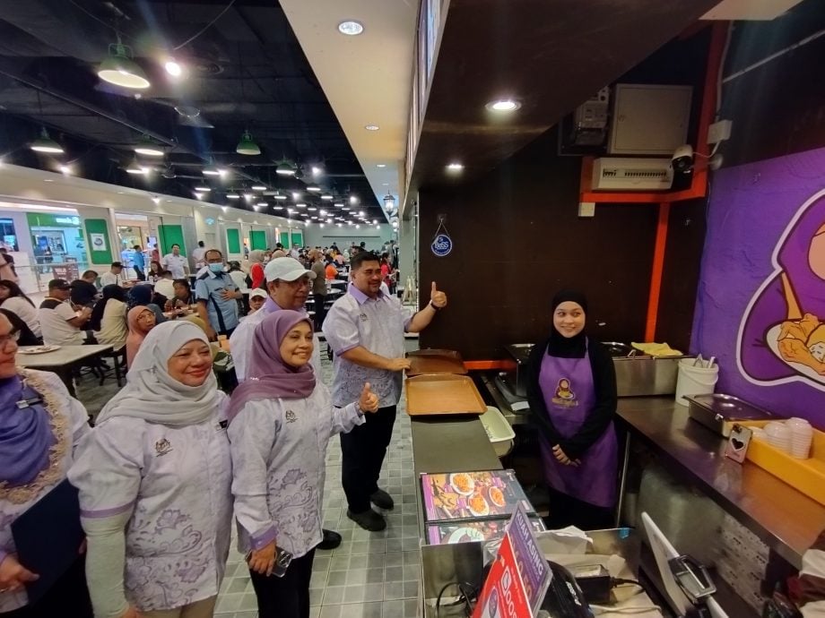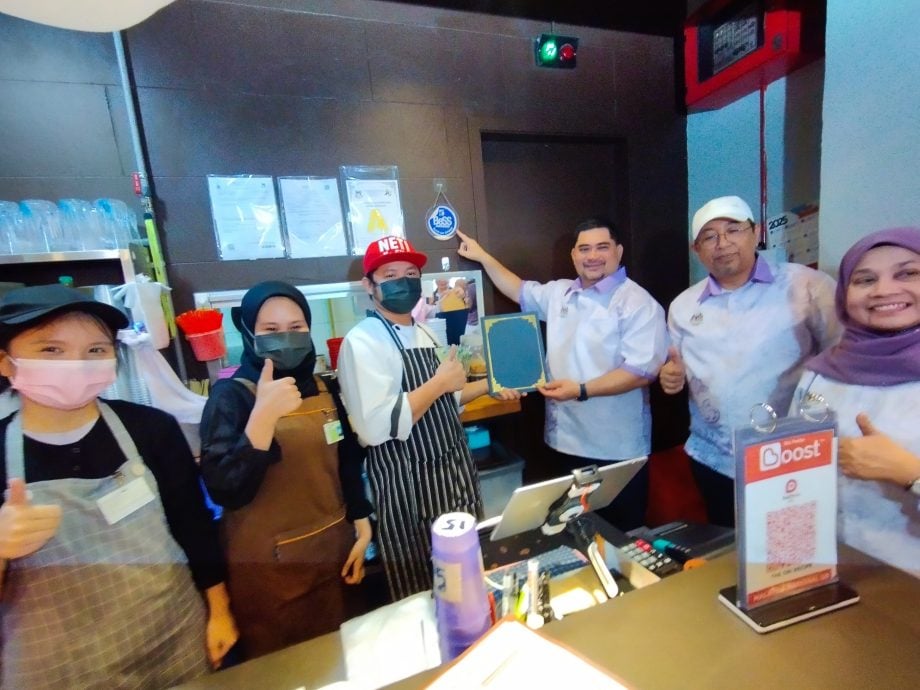 沙赫米过后在沙巴卫生局代总监莫哈末医生及官员的陪同下,前往我格商场饮食中心颁发BeSS证书予数家食肆。