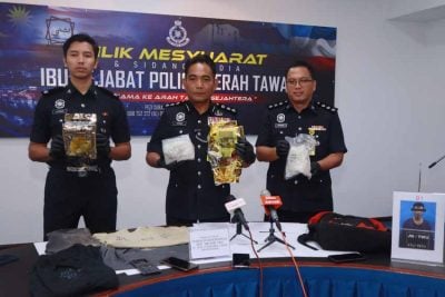 斗湖警区主任嘉斯明助理总监指出,警方是在接获民众通报后,派出特别队伍将嫌犯逮捕。嫌犯落网时背着一个黑色背包,警方检查背包后一个茶叶包装袋和一个冻干榴梿包装袋,袋内装着疑似冰毒的透明晶体块。
