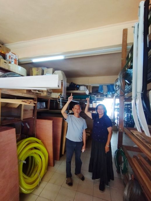 由于毗邻楼房地板坍塌,市政厅下令李抒频母亲持有的整座店屋必须清空以确保安全。图:李抒频(右)与即将迁离的1楼租户在店里合影。