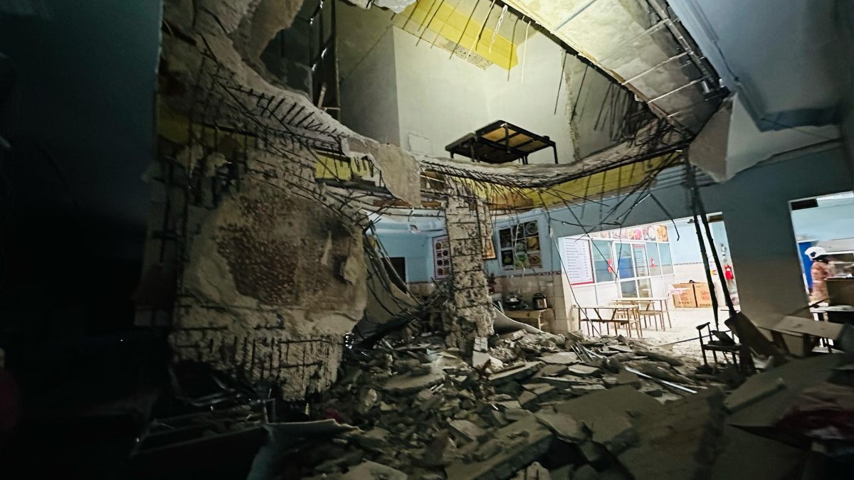 今年3月7日,西加麦商业区其中一栋店屋一楼单位的钢筋水泥地板突然大面积坍塌,情景骇人。