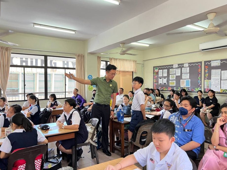 由两位语文教师陈永泰、梁缓及两位数学教师覃宁宁及刘广松组成的团队今早在亚庇中华学校与学生互动,通过公开课展示,为在场师生呈现生动的教学示范。