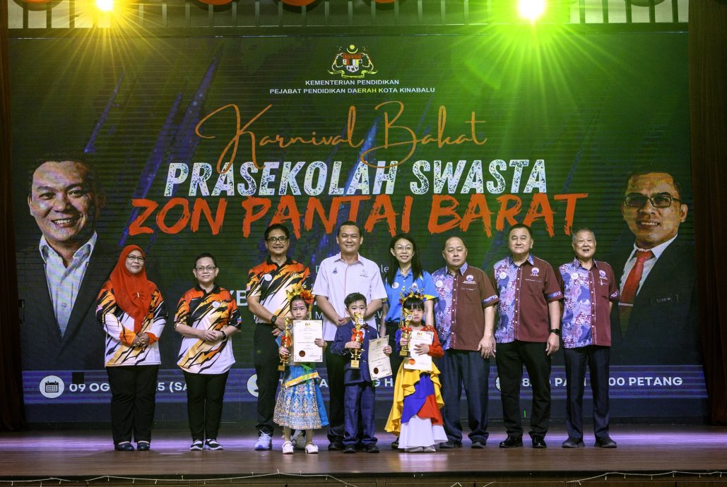 受邀担任主宾的沙巴州财政部助理部长拿督陈历发恭贺教育局亚庇区办事处与西海岸区私立幼儿园举办这项意义非凡的活动,让来自各地的小朋友展现出非凡的才华。
