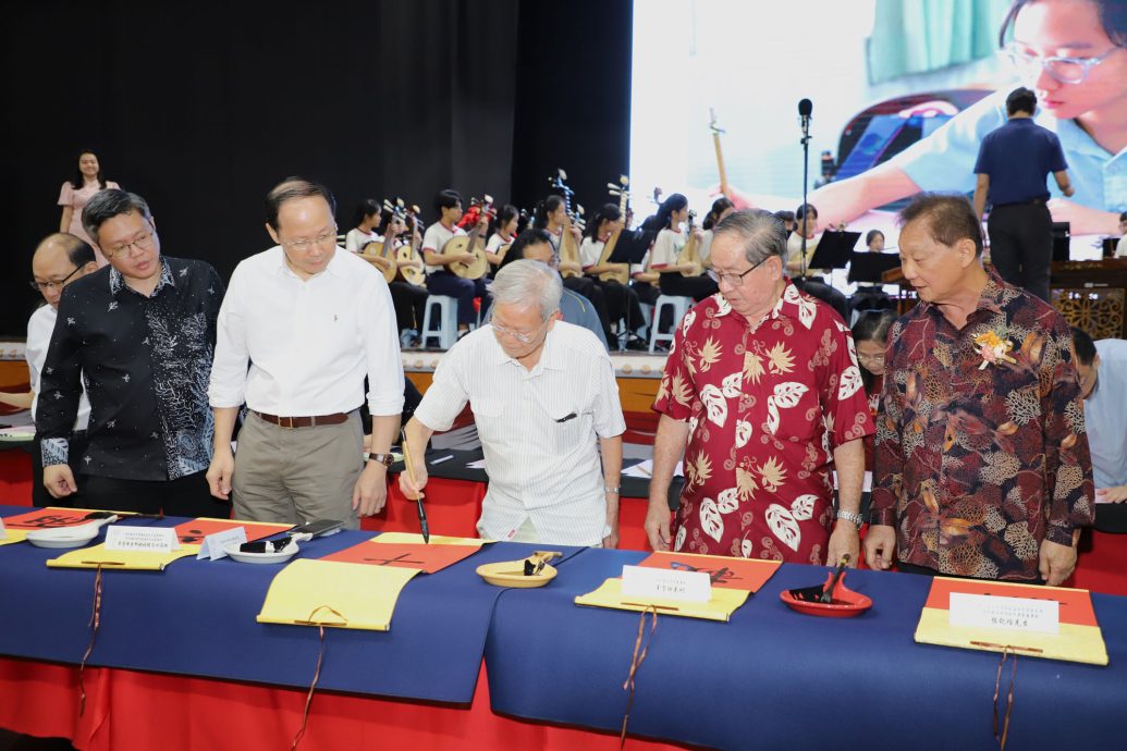 出席嘉宾包括沙巴崇正中学校友会永久名誉顾问兼沙巴亚庇书艺协会名誉顾问拿督斯里张志刚、沙巴崇正中学董事长拿督杨菊明、副董事长林涌斌、⽅德宇、永久荣誉董事⻓拿督杨建中、拿汀⽅谈步珍、校⻓郑展兴、校友会主席张碧玉、沙巴亚庇书艺协会主席张少纶、校友、师生,共同见证这项结合艺术、人文与教育意义的盛事。