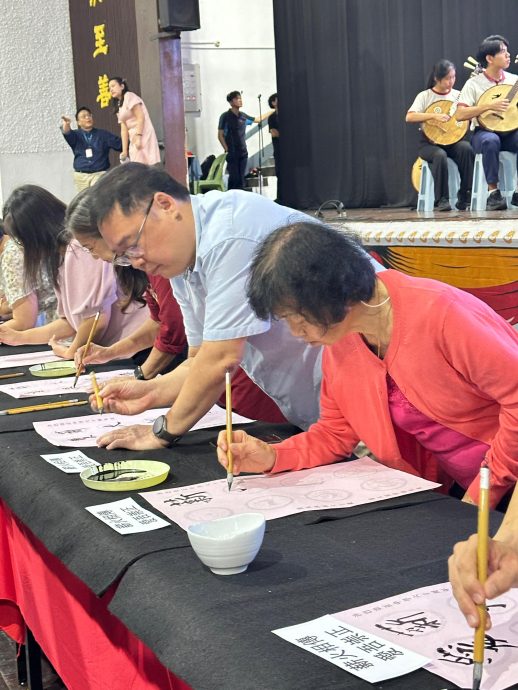这场由沙巴崇正校友会与沙巴亚庇书艺协会联合主办的书法展,今早在兆龙大礼堂隆重开幕,由校友会永久荣誉主席兼永久荣誉董事⻓张纪煌主礼。