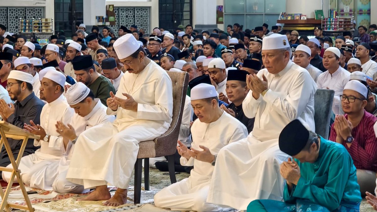 逾5000名穆斯林齐聚亚庇城市清真寺为查拉进行特别祷告。(首长办公室提供)