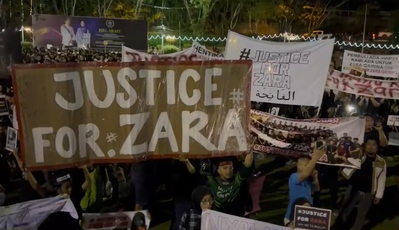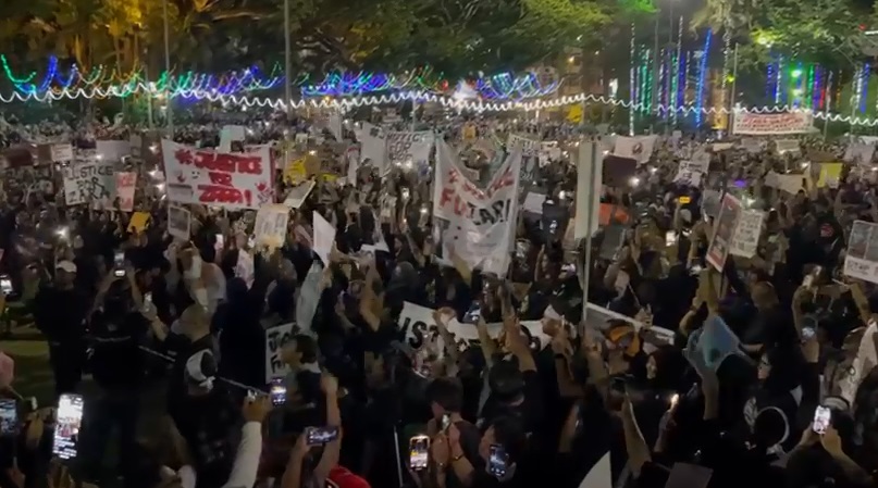 13岁女学生坠楼亡 | ”为查拉伸张正义”和平集会 亚庇独立操场一片黑海