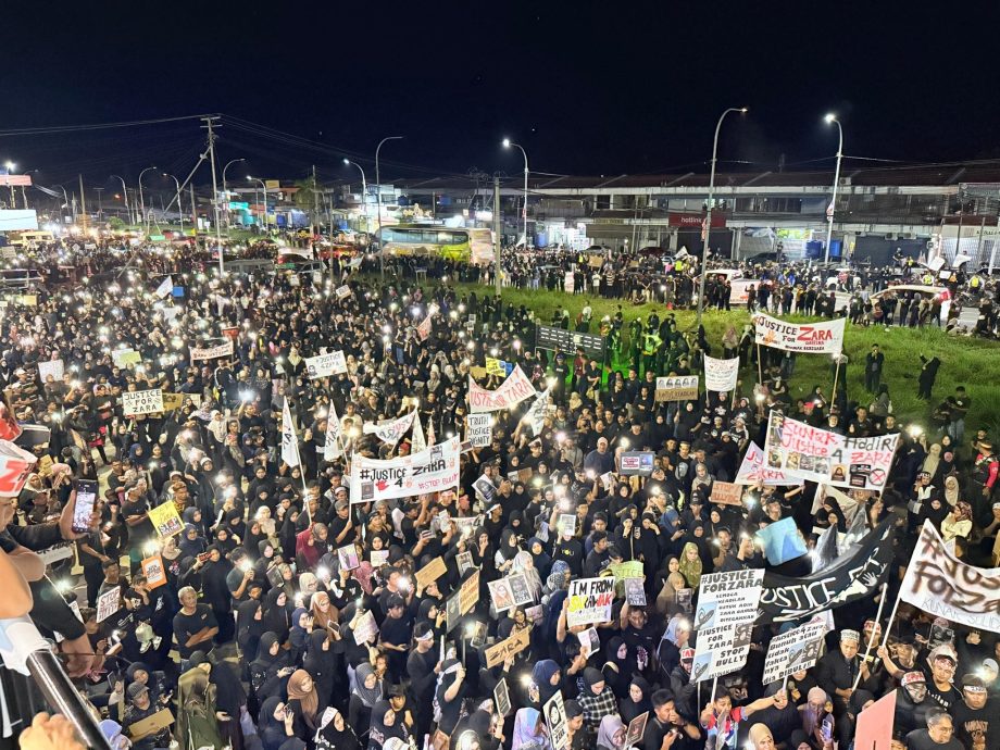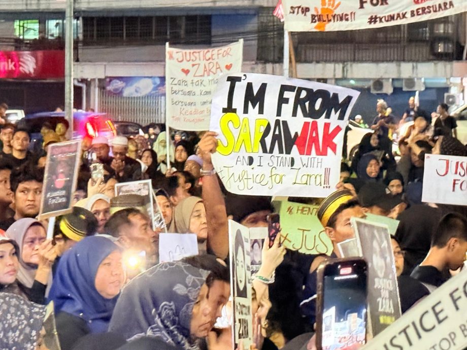 除了亚庇,昨晚还有3个地区民众带着一家老小出席在保佛Mingo镇、根地咬体育馆以及古纳市镇举行的黑潮集会,约数千名集会者手举为查拉伸张正义、停止霸凌等标语、横幅和画像,表达对真相与正义的共同诉求。