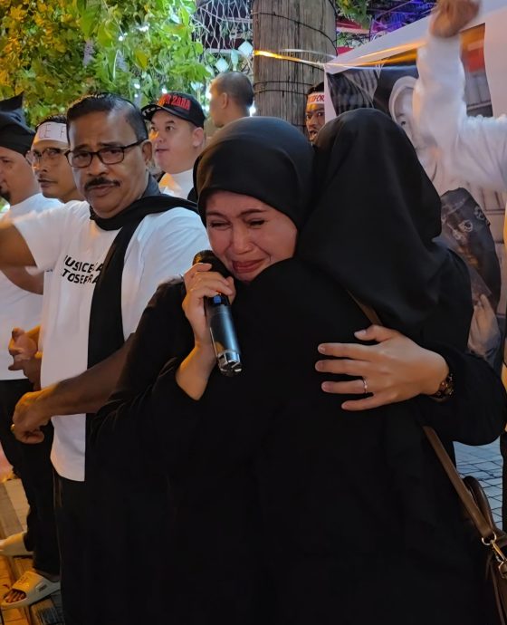 (亚庇17日讯)“为查拉伸张正义”浪潮继续席卷全国以及沙巴各地,一名母亲昨晚在亚庇袖珍公园的和平集会中发言时一时感触,一边洒泪一边紧紧拥抱女儿,场面令人动容。
