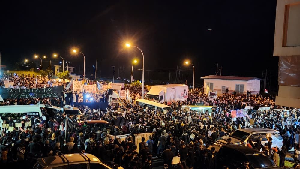 随后,人群齐声高喊:“Justice For Zara”,口号声此起彼落,在游客聚集的加雅街袖珍公园广场久久回荡。