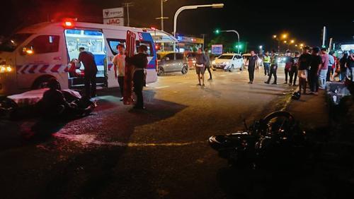重伤者包括22岁的摩托车骑士和18岁的摩托车乘客(皆男子),以及21岁的轿车女司机。