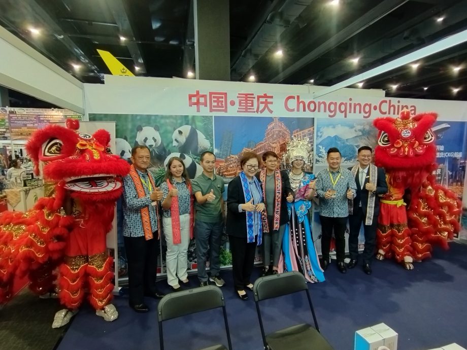 大马国际旅游展今年迎来重庆旅游局,刘静芝(左四)与该局人员合影。