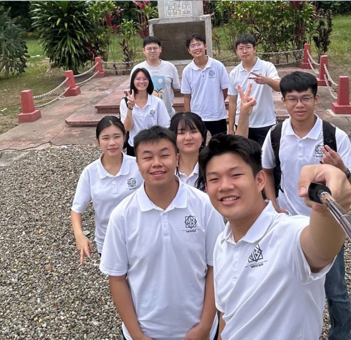 黎敏慧(第三排左1)与班长团顾问老师杨俊裕(第四排左1)及同学们参观山打根历史景点。