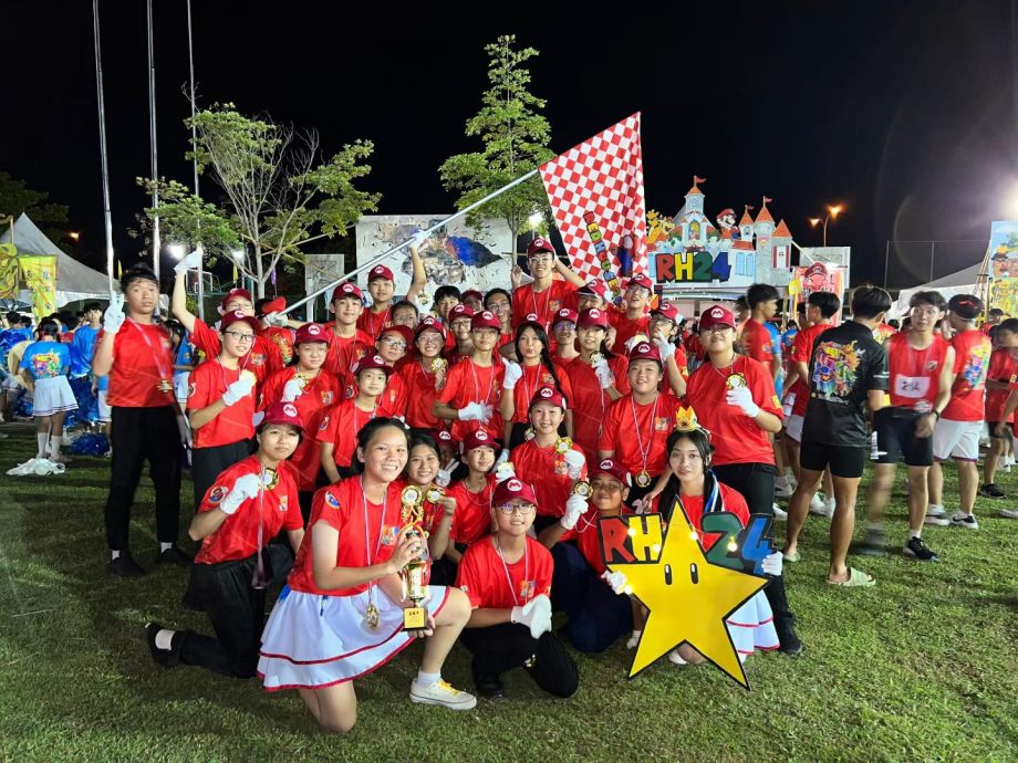 黎敏慧(前者捧奖杯者)参与2024年红队步操,更感受到团队教育的重要。