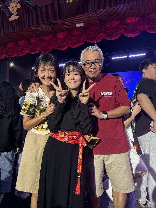 郭芯听(中)父母出席观赏华乐团演奏会,为女儿的优秀感到无比骄傲。