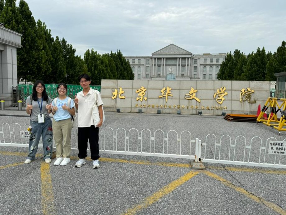 左起为黎敏慧、郭芯听、邓启则抵达北京华文学院的第一天。