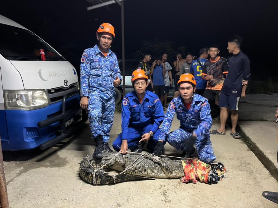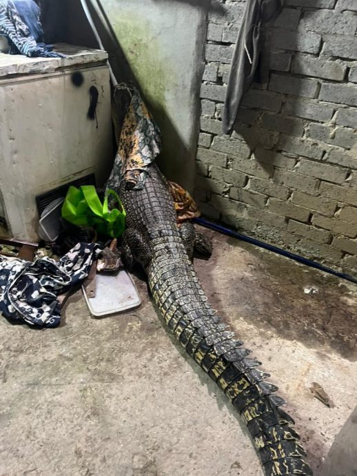 (保佛12日讯)保佛甘榜小克里雅斯(Kg Klias Kecil)周四(11日)傍晚传出一宗鳄鱼闯入民宅范围的惊险事件,一头重达80公斤、长约7尺的雌性鳄鱼出现在村民住家后方厨房附近,所幸民防部队迅速出动将它捕获。