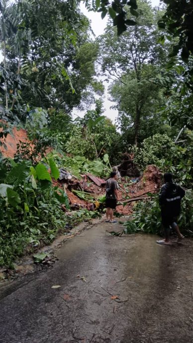(亚庇15日讯)实邦加的甘榜翁贡再也(Kg. Unggun Jaya)发生土崩,泥石流夹带山坡上的树木与植被冲落路面,导致道路受阻。