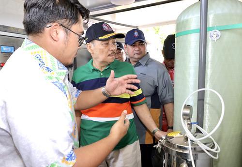 哈芝芝今早到访斗亚兰甘榜巴鲁,视察由Jetama安装的纳米过滤太阳能饮用水系统。他表示,这套由Jetama开发的系统性能优越,能有效协助偏远地区获取净水。