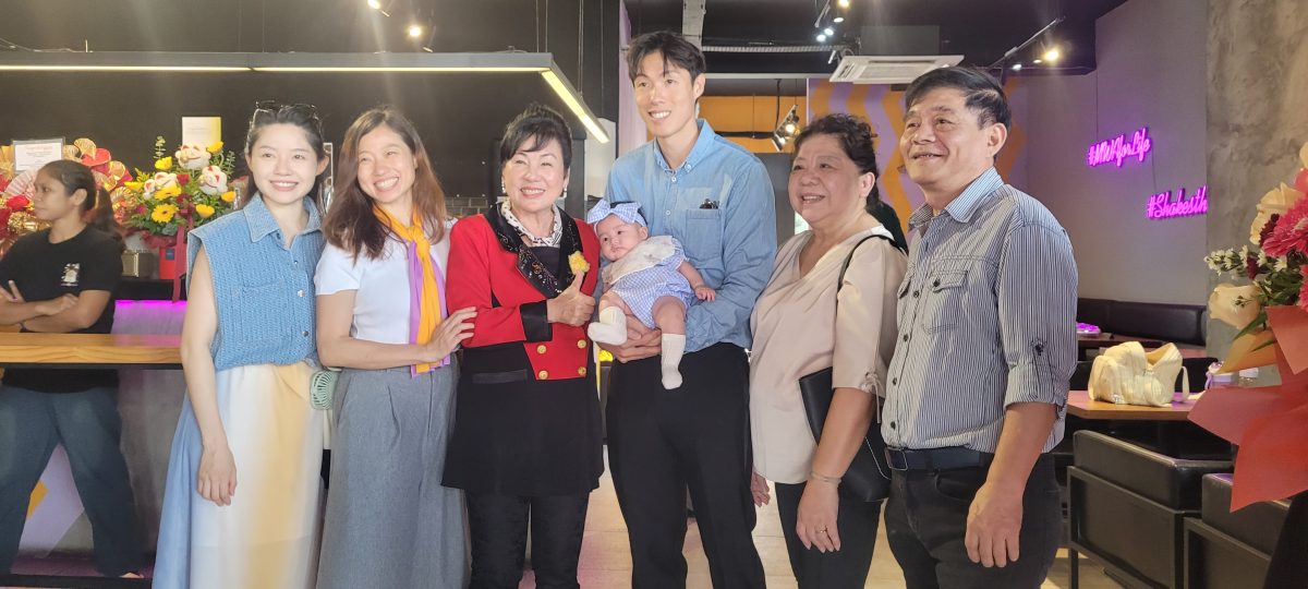 左五起黄天恩、黄小娟、黄家韵等为Ai-cha及MWA SHAKES联合剪彩。