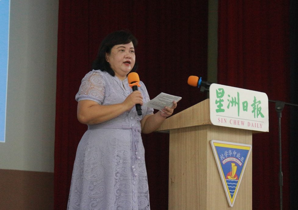 她在“中沙情缘”之非华裔华语演讲比赛决赛暨颁奖典礼致词时表示,我国的孩子们成长于“三语并重”的环境,华文、马来文和英文齐头并进,使他们在国内外均具备竞争优势。