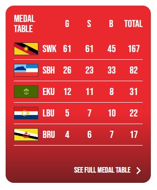 截至周日下午4时45分,沙巴运动员在各项赛事中出色发挥,斩获26枚金牌、23枚银牌和33枚铜牌。