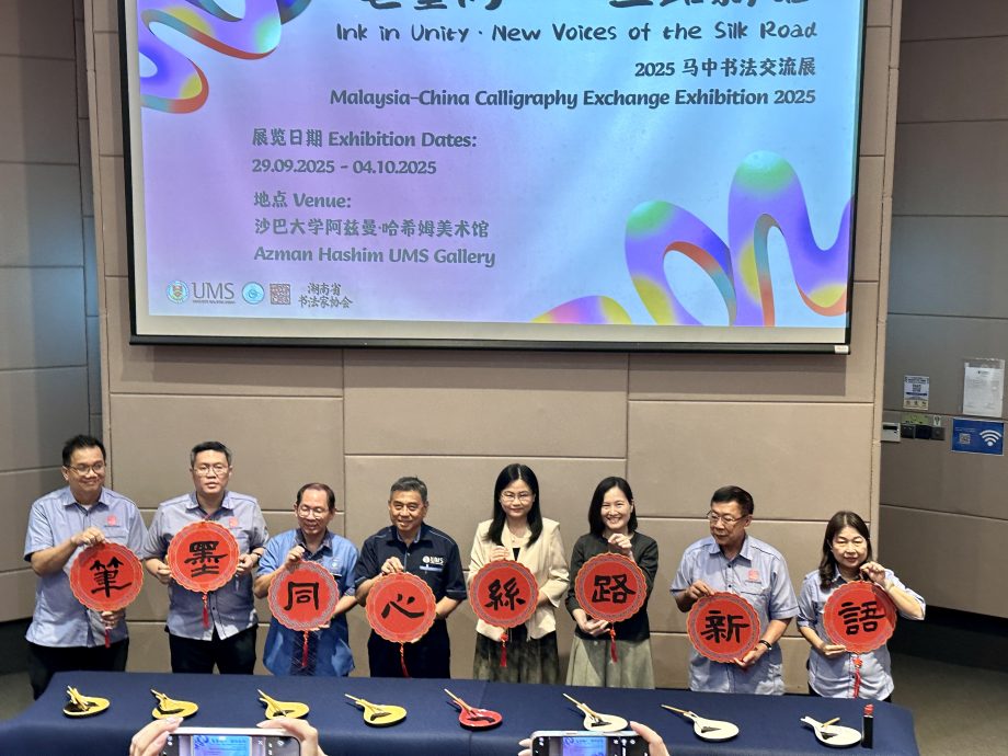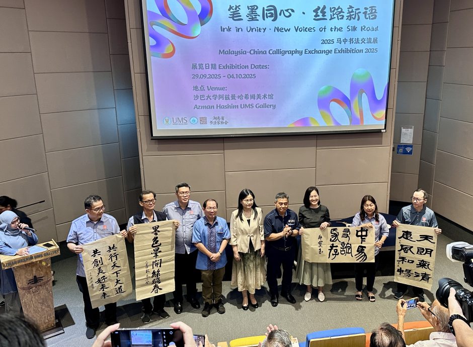 (亚庇30日讯)2025年“笔墨同行·丝路新语”于9月29日下午3时,在阿兹曼哈欣艺廊(Azman Hashim UMS Gallery)揭幕。展览汇集来自中国长沙、内蒙古、西安及马来西亚各地共65位家的精心之作,全面呈现跨地域、多元文化交融下的书法艺术风貌。