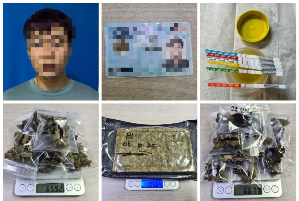 毒品罪案调查组主任阿胡辛哈里尔表示,警方在屋内搜出的一个透明塑料袋,内装105.64克疑似大麻的压缩植物块,另外还有2个塑料盒子,装有26个小包大麻,总重量为132.69克。