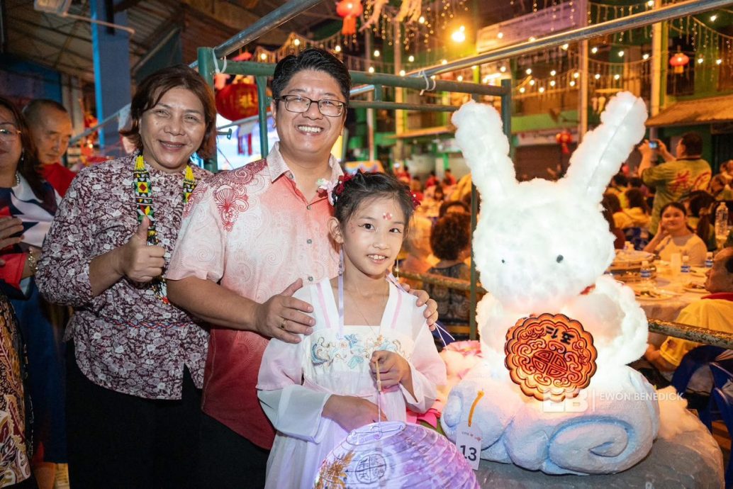 该项在东贡岸布哈旺广场举行的中秋晚会是由兵南邦华人甲必丹所主办,依温欣见当地多达28个华人社团领袖出席同欢共庆,展现出各族间团结共融的强大精神。