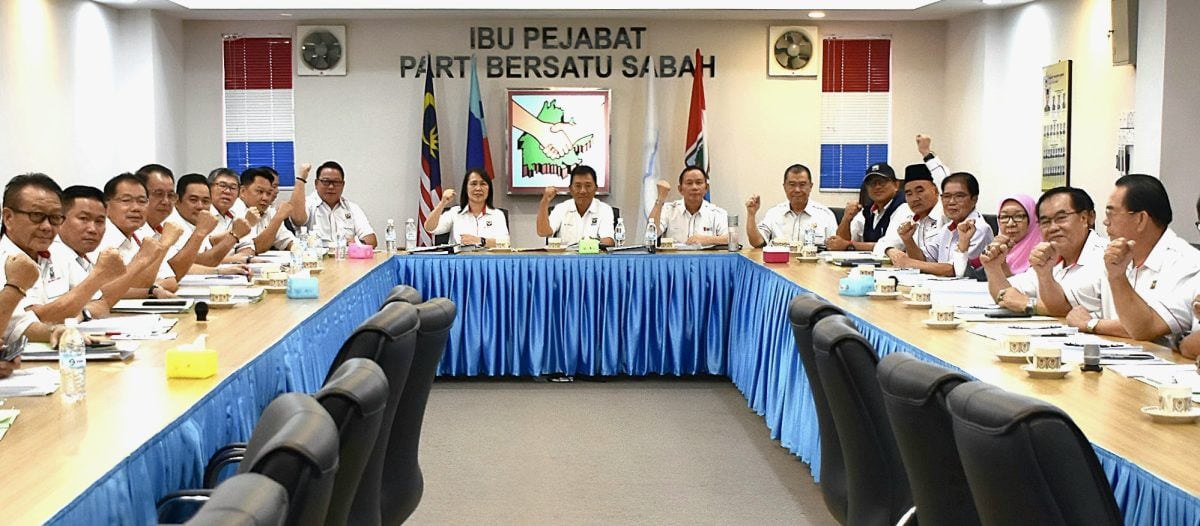 佐津(右九)与沙巴团结党领袖在政治局会议上合影。