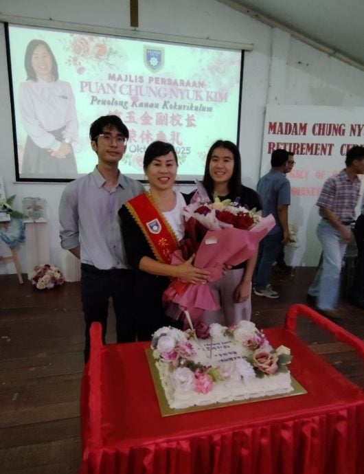 (亚庇17日讯)日前举行温馨的退休欢送会,董家教员生齐聚一堂,为服务教育界长达36年的副校长钟玉金送上最深的敬意与祝福。