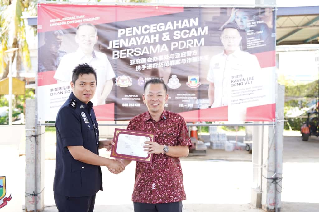 为了打击层出不穷的诈骗罪案,行动党亚庇国会办事处今日与亚庇警区总部、及多个政府部门单位,在亚庇大业新村联手举办“防范罪案及诈骗讲座”,吸引了上百位民众出席聆听。
