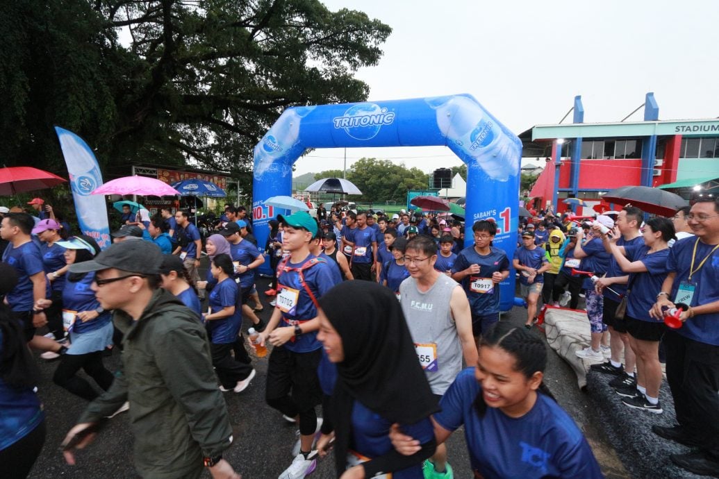 (亚庇26日讯)风雨无阻,热情如初!为庆祝TCT集团成立25周年而举行的TCT 7公里竞跑(TCT 7K Run)今天清晨在雨中热烈举行,上千名跑者与TCT集团高层及员工一同开跑,场面热闹。