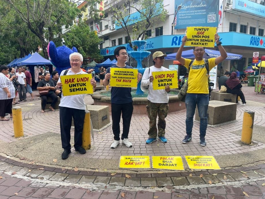(亚庇26日讯)净选盟等公民组织在支持者参与下今早在加雅街周日市集举行“快闪行动”,手持大字报呼吁选举委员会立即扩大邮寄投票范围,让身在外州的沙巴选民能够在即将举行的第17届沙巴州选中行使投票权。