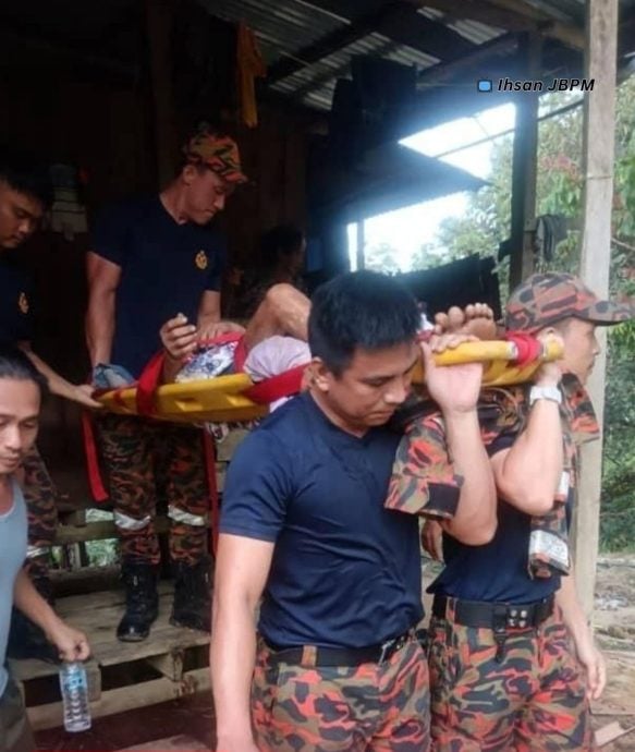 (兵南邦27日讯)消防队员昨日徒步行走约两公里,翻山越岭救援一名在甘榜诺托鲁斯(Kg Notoruss)割草时受伤的83岁长者。