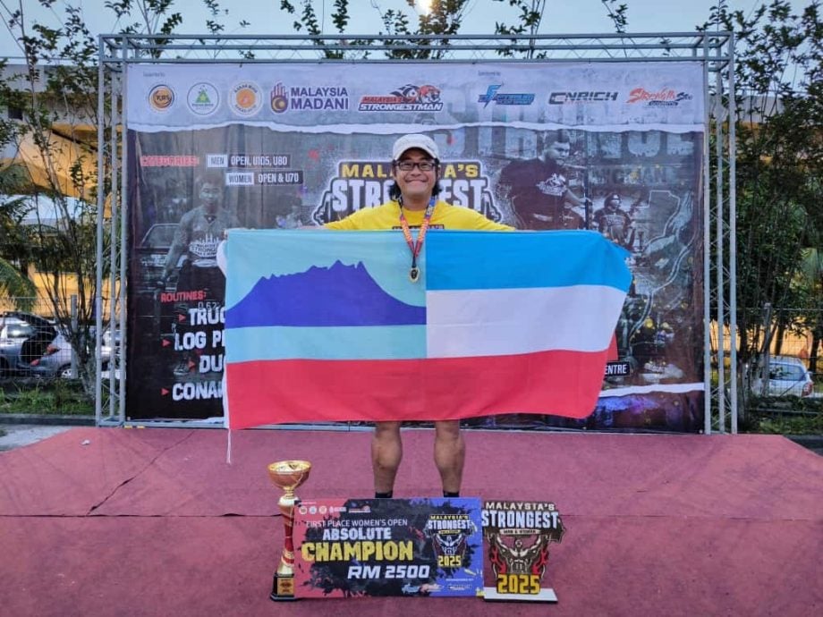 (亚庇27日讯)沙巴女大力士王淑霞在2025年马来西亚大力士挑战赛中,再次以无敌姿态蝉联女子公开组冠军。